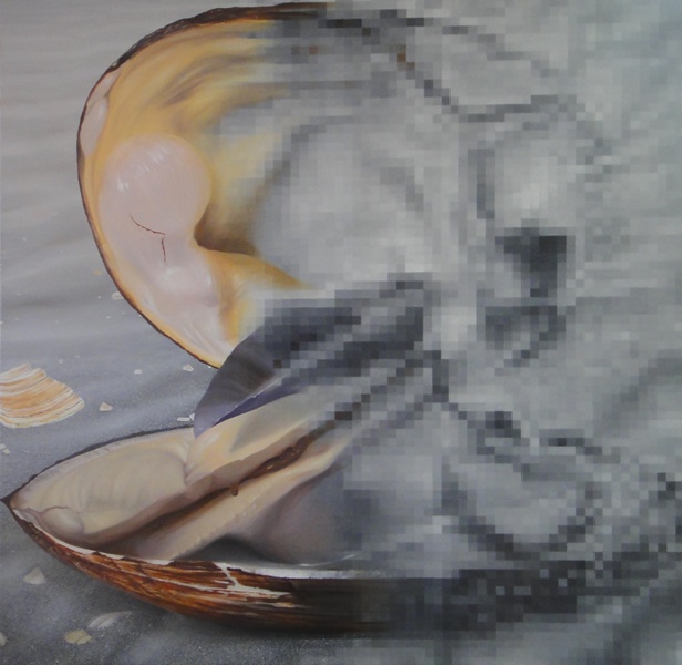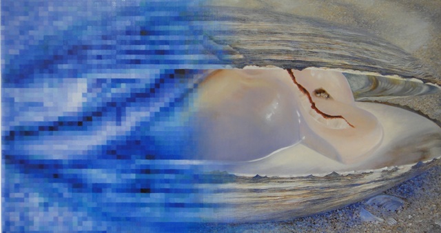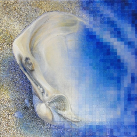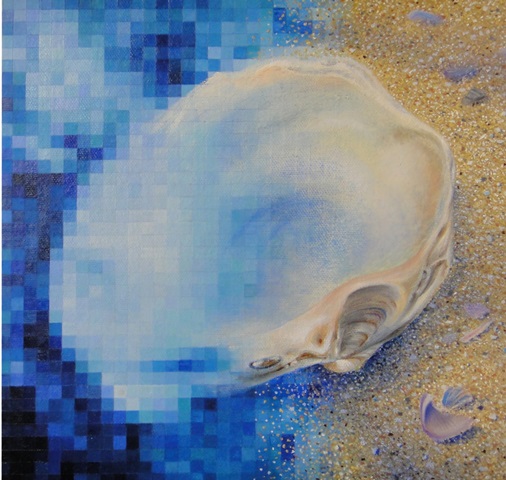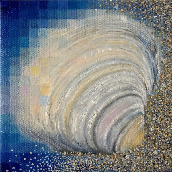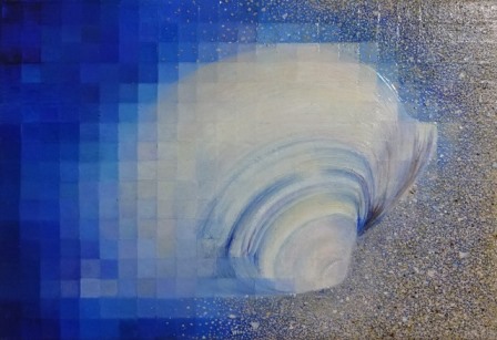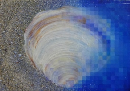 原発事故後の福島の海岸で拾った貝を描いたシリーズ
